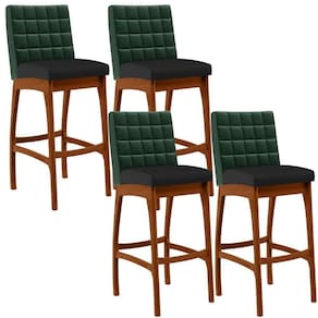 ndo muita excelência, o Kit 04 Banquetas Altas Cozinha Sala Jantar Fixa Mila B04 Facto Verde Musgo Corano Preto - Lyam Decor é o complemento que faltava para deixar sua casa ainda mais extraordinária. Seu encosto com costura em padrão quadriculado e assento estofados, centralizam em si uma graciosidade estonteante, sem perder todo o conforto. A estrutura em madeira, na cor nozes, também é digna de notoriedade, por imprimir bastante personalidade a sua decoração. Vale ressaltar ainda, o apoio para os pés que garante maior à banqueta.