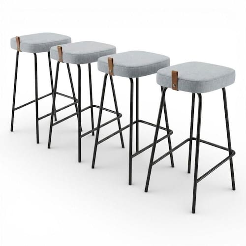 Kit 04 Banquetas Altas Cozinha E área Gourmet Vik Estofada Linho Cinza - Desk Design
