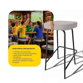 Banqueta Alta Estofada Vik ideal para quem busca praticidade, conforto e um visual moderno em bancadas. Com estrutura em aço carbono e pintura epóxi, oferece firmeza no uso diário e ótima durabilidade, sendo perfeita para compor cozinhas, áreas gourmet, bares e espaços de churrasqueira com um toque minimalista e atual.
