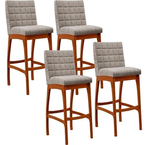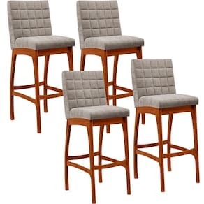 ndo muita excelência, o Kit 04 Banquetas Altas Para Cozinha Sala De Jantar Fixa Mila B04 Bouclê Bege - Lyam Decor é o complemento que faltava para deixar sua casa ainda mais extraordinária. Seu encosto com costura em padrão quadriculado e assento estofados, centralizam em si uma graciosidade estonteante, sem perder todo o conforto, sendo revestidos pelo riquíssimo tecido em bouclê que por si só já é um espetáculo. A estrutura em madeira, na cor nozes, também é digna de notoriedade, por imprimir bastante personalidade a sua decoração. Vale ressaltar ainda, o apoio para os pés que garante maior segurança à banqueta.