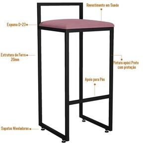 Kit 04 Banquetas Altas Para Cozinha Sala De Jantar Hanna L02 Preto Suede Rosê - Lyam Decor O seu sonho é ter uma cozinha integrada? Uma banqueta pode ser fator determinante para ajudar nesta tarefa, principalmente se você contar com o modelo Kit 04 Banquetas Altas Para Cozinha Sala de Jantar Hanna Suede Rosê - Lyam Decor. Ideal para quem deseja montar uma cozinha americana ou agregar valor à sua área gourmet, o modelo possui design slim que é super apropriado para apartamentos ou para quem tem uma cozinha compacta. Outro ponto positivo é que este modelo não possui braços, sendo assim ocupa menos espaço e torna melhor para circulação. Ah, também possui apoio para os pés, elemento fundamental para a ergonomia e conforto. As opções de uso são infinitas, seja para um living, recepção, hall de entrada, sala de jantar, área gourmet ou ambiente corporativo. Para ter um espaço vital procure a distância mínima de 50 cm entre as banquetas. Desta forma a organização ficará harmônica e muito confortável para utilização. Dimensões do produto (A x L x P) 81 x 35 x 36 cm Altura do assento ao chão: 66 cm Características: Estrutura de Ferro com espessura de 20mm. Acabamento em pintura eletrostática cor Preto. Estrutura do assento em Madeira de Eucalipto. Assento fixo com espuma certificada D-23. Revestimento em Suede. Sapatas Niveladoras. Peso suportado: Até 150 kg. - Por se tratar de estofado as medidas podem ter uma pequena variação de até 3 cm. - A tonalidade do produto real poderá ter ligeira variação devido o lote de tecidos. Observações importantes: - Produto para uso residencial em ambiente interno, não devendo ficar exposto diretamente ao sol, calor e umidade excessivos. - Pode haver alguma diferença de tonalidade entre a imagem e o produto real, por conta do tratamento de imagens e a calibração de cores do seu monitor. - As imagens são meramente ilustrativas, não acompanham objetos de decoração e eletrônicos. - Ao receber a mercadoria, o cliente deve verificar as condições da embalagem, caso haja alguma não assine o de . - Montagem, desmontagem e outras instalações serão de responsabilidade do cliente. Eventuais despesas são de responsabilidade do comprador. - Confira as dimensões do produto e certifique-se de que passará normalmente por supostos elevadores, portas, escadas e/ou corredores de sua residência. Altura Montado: 81 | Largura Montado: 35 | Profundidade Montado: 36