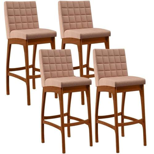 ndo muita excelência, a Kit 04 Banquetas Altas Para Cozinha Sala de Jantar Fixa Mila B04 Linho Rosê - Lyam Decor é o complemento que faltava para deixar sua casa ainda mais extraordinária. Seu encosto com costura em padrão quadriculado e assento estofados, centralizam em si uma graciosidade estonteante, sem perder todo o seu conforto. A estrutura em madeira, na cor nozes, também é digna de notoriedade, por imprimir bastante personalidade a sua decoração. Vale ressaltar ainda, o apoio para os pés que garante maior à mesma.