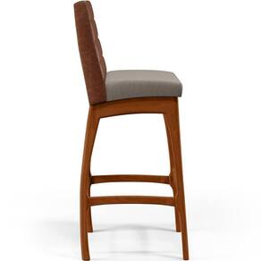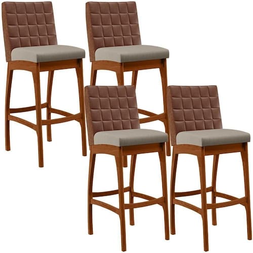 ndo muita excelência, o Kit 04 Banquetas Altas Cozinha Sala Jantar Fixa Mila B04 Couríssimo Marrom Linho Bege - Lyam Decor é o complemento que faltava para deixar sua casa ainda mais extraordinária. Seu encosto com costura em padrão quadriculado e assento estofados, centralizam em si uma graciosidade estonteante, sem perder todo o conforto. A estrutura em madeira, na cor nozes, também é digna de notoriedade, por imprimir bastante personalidade a sua decoração. Vale ressaltar ainda, o apoio para os pés que garante maior segurança à banqueta.