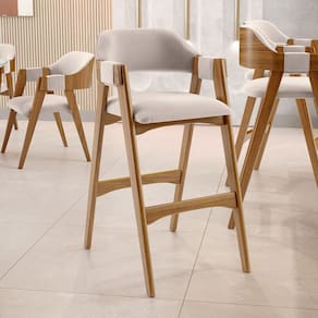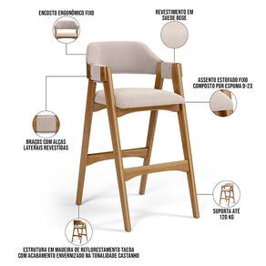 Na cozinha ou qualquer outro ambiente, o Kit 04 Banquetas Altas Suran, da Lyam Decor, se destaca com seu design moderno e elegante. Com uma estrutura de madeira que exala sofisticação, essa banqueta estofada é o convite perfeito para momentos de descontração e sabor. O estofado macio, harmoniza com os demais elementos do ambiente, além de proporcionar conforto enquanto se saboreia um café da manhã preguiçoso ou uma taça de vinho ao entardecer. Já o encosto curvo e os braços delicadamente projetados abraçam o corpo, transformando cada instante em uma experiência acolhedora.