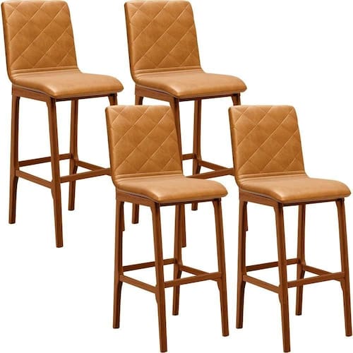 O complemento perfeito para o seu ambiente existe e está aqui! O Kit 04 Banquetas Altas Para Cozinha Sala de Jantar Fixa Zoe B04 Couríssimo Whisky - Lyam Decor vai ampliar totalmente a maneira como você compunha sua decoração, numa pegada clássica, com belíssima estrutura em madeira, na cor nozes, possui assento e encosto estofados super confortáveis e convidativos, além do apoio para os pés que garante maior segurança.