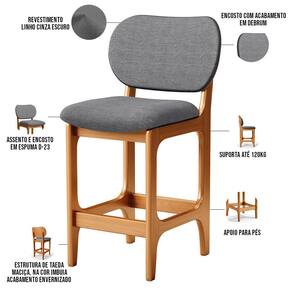 Amplamente sofisticada, o Kit 04 Banquetas Baixa Bar Cozinha Sala Jantar Betta L02 Imbuia Linho Cinza Escuro - Lyam Decor irá agregar ainda mais valor em sua decoração!! Sendo capaz de compor muito bem o ambiente, é produzida com materiais de excelente qualidade, a resistente estrutura em madeira de Taeda, na cor imbuia, conta com apoio para os pés (que garante maior segurança), além do assento e encosto estofados super confortáveis e convidativos, que são revestidos em tecido Couríssimo, composição extremamente elegante.