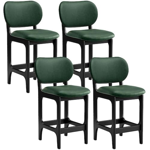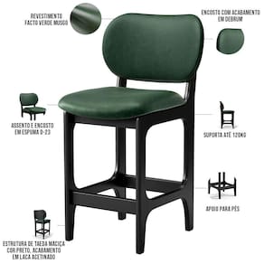 Amplamente sofisticada, o Kit 04 Banquetas Baixa Bar Cozinha Sala Jantar Betta L02 Facto Verde Musgo - Lyam Decor irá agregar ainda mais valor em sua decoração!! Sendo capaz de compor muito bem o ambiente, é produzida com materiais de excelente qualidade, a resistente estrutura em madeira de Taeda, na cor Preto, conta com apoio para os pés (que garante maior segurança), além do assento e encosto estofados super confortáveis e convidativos, que são revestidos em tecido Couríssimo, composição extremamente elegante.