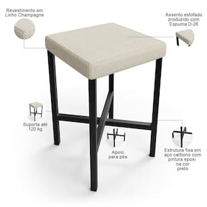 Color: Bege | ColorFamily: Bege | ColorSimple: Bege | ColorSupplier: Champagne | Material: Estrutura de aço carbono, Revestimento em Linho e espuma | MaterialFamily: Aço carbono, linho espuma | Model: Stella | OriginCountry: Nacional | OriginState: PR | ProductContents: 04 Banquetas | ProductHeight: 98 cm | ProductInstructions: Produto para uso em ambiente interno, nao devendo ficar exposto ao sol, calor e umidade excessivos. | ProductLength: 37 cm | ProductWarranty: 90 dias após o recebimento do produto | ProductWeight: 16 kg | ProductWidth: 39 cm | SizeDescription: Altura: 98 cm x Largura: 39 cm x Profundidade: 37 cm | SupplierSimpleName: Kit 04 Banquetas Baixa Bar Cozinha Sala De Jantar Preto Stella L02 Linho Champagne - Lyam Decor