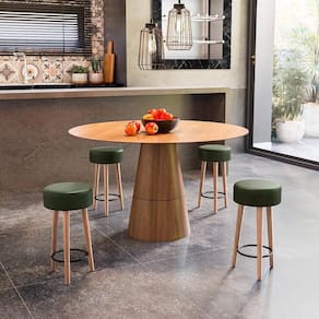 Que tal a Banqueta Baixa Para Cozinha Paris Estofada D-33 com Pés de Madeira Rosqueáveis?