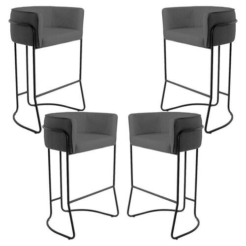 Kit 04 Banquetas Decorativas Fixa Base De Aço Preto Betina D02 Corano Cinza C-03 - Lyam Decor O Kit 04 Banquetas Decorativas Fixa Base de Aço Preto Betina D02 Corano Cinza C-03 - Lyam Decor exala formosura e elegância! Excelente opção para dispor em sua sala de estar, sala de jantar, em cozinha americana e até mesmo área gourmet. Seu protagonismo é notório, sem sombra de dúvidas é perfeita para qualquer ambientação que desejar colocá-la. Com sua resistente estrutura em aço, na cor Preto, o encosto e assento revestidos em Corano, deixarão sua decoração ainda mais sofisticada. Oferecendo máximo conforto sem deixar de transmitir todo a magnitude que seu lar merece! Dimensões do produto (L x A x P) 59 x 92 x 44 cm Medidas Internas: Altura do Assento: 74 cm Profundidade Livre do Assento: 43 cm Largura do Assento: 41 cm Altura livre do Encosto: 17 cm Largura do braço: 8 cm Altura do braço: 17 cm Altura dos pés: 67 cm Características: Estrutura em madeira de eucalipto; Partes em MDF e OSB; Revestimento em Corano Cinza; Assento Fixo com espuma D-28 Sobre Percintas elásticas; Encosto Fixo com espuma D-23 Sobre Percintas elásticas; Braço Espuma D-23; Peso suportado: Até 120 kg; Base em aço com acabamento em pintura epóxi na cor Preto. - Por se tratar de estofado as medidas podem ter uma pequena variação de até 3 cm. - A tonalidade do produto real poderá ter ligeira variação devido o lote de tecidos. Observações importantes: - Produto para residencial em ambiente interno, não devendo ficar exposto diretamente ao sol, calor e umidade excessivos. - Pode haver alguma diferença de tonalidade entre a imagem e o produto real, por conta do tratamento de imagens e a calibração de cores do seu monitor. - As imagens são meramente ilustrativas, não acompanham objetos de decoração e eletrônicos. , caso haja alguma não assine o comprovante de recebimento. - Montagem, desmontagem e outras instalações serão de responsabilidade do cliente. Não nos responsabilizamos, no ato da entrega, por subir escadas/elevadores ou pelo transporte por guincho em apartamentos. Eventuais despesas são de responsabilidade do comprador. - Confira as dimensões do produto e certifique-se de que passará normalmente por supostos elevadores, portas, escadas e/ou corredores de sua residência. Altura Montado: 92 | Largura Montado: 59 | Profundidade Montado: 44