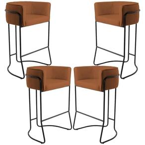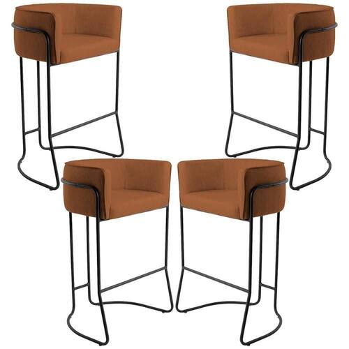 Kit 04 Banquetas Decorativas Fixa Base De Aço Preto Betina D02 Veludo Telha C-262 - Lyam Decor