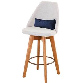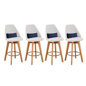 Kit 04 Banquetas Alta Maya Giratória Com Encosto Gourmet Linho Bege E Almofada Sintético Azul Marinho - Gat Magazine