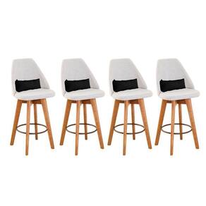 Kit 04 Banquetas Alta Maya Giratória Com Encosto Gourmet Linho Bege E Almofada Suede Preto - Gat Magazine Banqueta Maya Giratória - GAT MAGAZINE A Banqueta Maya possui assento e pés em madeira eucalipto com sistema giratório! Os pés contam com um reforço que proporciona um suporte de peso de até 120 Kgs.O assento é revestido com espuma D-23. Além de bonita e charmosa, vai trazer para seu ambiente elegância e proporcionará conforto para sua família e amigos nos momentos de lazer.