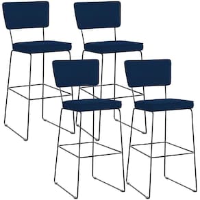 O espetáculo que é o Kit 04 Banquetas Alta Bar Cozinha Sala De Jantar Fixa Allana L02 Suede Azul Marinho - Lyam Decor vem para agregar ainda mais valor na decoração da sua casa. Sua estrutura em aço remete-nos ao estilo industrial que surgiu em Nova York no século XX, já o assento e encosto estofados trazem equilíbrio e conforto criando a combinação perfeita para o ambiente. Podendo ser disposta em bancada, cozinha americana, espaço gourmet ou home bar, ela se destaca com muita elegância e presença. Conta com materiais de máxima qualidade e está sempre pronta para recepcionar família e amigos de forma agradável. Você e seu lar merecem, aproveite!!