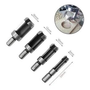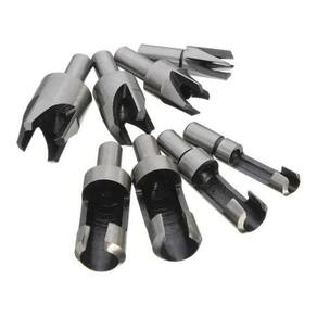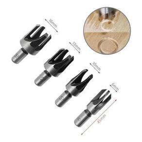 Kit 04 Brocas para Cavilhas + 4 Cortadores Tapa Furos Especificações Métricas 6mm, 10mm, 13mm, 16mm Polegada especificações são 1/4, 3/8, 1/2, 5/8 Diâmetro da haste: 10mm
