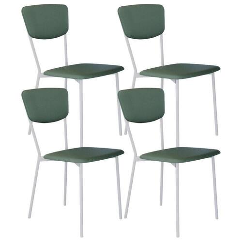 SizeDescription: Altura: 249 cm x Largura: 43 cm x Profundidade: 53 cm | MaterialFamily: Aço, MDP, Couro sintético e espuma | Model: Village | Material: Estrutura em Aço e MDP, Revestimento em Couro sintético e espuma | ColorSimple: Verde | ProductHeight: 249 cm | ColorSupplier: Verde Sálvia | ProductLength: 53 cm | Color: Verde | OriginCountry: Brasil | ProductWidth: 43 cm | ProductWarranty: 90 dias após o recebimento do produto | SupplierSimpleName: Kit 04 Cadeira Para Sala de Jantar Village Branco C01 Courino Verde Sálvia - Lyam Decor | ProductContents: 04 Cadeiras | ProductInstructions: Produto para uso em ambiente interno, nao devendo ficar exposto ao sol, calor e umidade excessivos. | ProductWeight: 26 kg | ColorFamily: Verde | OriginState: PR | Cor: Verde