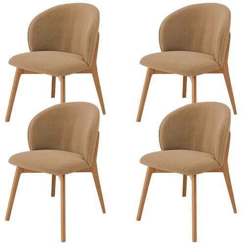 O Kit 04 Cadeiras de Jantar e Estar Living Estofada Mia, da Lyam Decor, é a combinação perfeita de design orgânico, conforto e modernidade, expressos em cada detalhe, desde as linhas curvas do assento e encosto até os pés de madeira maciça envernizada. Em outras palavras, essa cadeira estofada é ideal para complementar sua sala de jantar ou estar com elegância e estilo. Além disso, a tapeçaria feita com espuma D-26 oferece um conforto excepcional, permitindo que você desfrute de momentos prazerosos durante suas refeições ou conversas com amigos e familiares. Para completar, essa cadeira de jantar moderna é perfeita para quem busca uma sala de jantar contemporânea, já que seu design único traz uma sensação de beleza e sofisticação ao ambiente e, ainda, harmoniza facilmente com diversos estilos de mesa de jantar. Ah, mas além da sala de jantar, você também pode aproveitá-la como assento extra na sala de estar, recepção, escritório e até mesmo no quarto, ou seja, uma cadeira de madeira versátil como você sempre quis.
