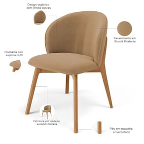ProductContents: 04 Cadeiras | MaterialFamily: Madeira, Bouclê e espuma | OriginState: PR | Model: Mia | ProductWidth: 56 cm | SizeDescription: Altura: 81 cm x Largura: 56 cm x Profundidade: 54 cm | Color: Amarelo | SupplierSimpleName: Kit 04 Cadeiras de Jantar e Estar Living Estofada Mia L02 Bouclê Mostarda - Lyam Decor | ProductWeight: 28 kg | Material: Estrutura em Madeira, Revestimento em Bouclê e espuma | OriginCountry: | ProductHeight: 81 cm | ColorSupplier: Mostarda | ProductLength: 54 cm | ProductInstructions: Produto para uso em ambiente interno, nao devendo ficar exposto ao sol, calor e umidade excessivos. | ColorFamily: Amarelo | ColorSimple: Amarelo | ProductWarranty: 90 dias após o do produto