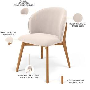 O Kit 04 Cadeiras de Jantar e Estar Living Estofada Mia, da Lyam Decor, é a combinação perfeita de design orgânico, conforto e modernidade, expressos em cada detalhe, desde as linhas curvas do assento e encosto até os pés de madeira maciça envernizada. Em outras palavras, essa cadeira estofada é ideal para complementar sua sala de jantar ou estar com elegância e estilo.