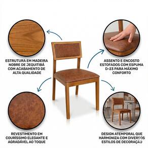 Fabricada com estrutura em madeira nobre de jequitibá cor Mel, a Cadeira Millie oferece resistência e durabilidade excepcionais. Seu assento e encosto contam com espuma D-23, garantindo conforto prolongado, enquanto o revestimento em couríssimo adiciona textura, charme e aconchego ao ambiente.