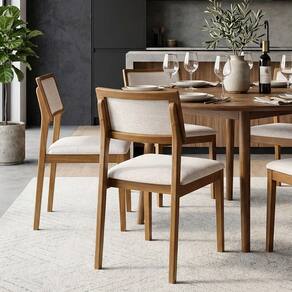 Fabricada com estrutura em madeira nobre de jequitibá cor Mel, a Cadeira Millie oferece resistência e durabilidade excepcionais. Seu assento e encosto contam com espuma D-23, garantindo conforto prolongado, enquanto o revestimento em linho adiciona textura, charme e aconchego ao ambiente.