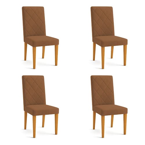 Kit 04 Cadeiras de Jantar Estofada Siena Veludo Pés Trapézio Castanho - Pallazio - Marrom Cacau