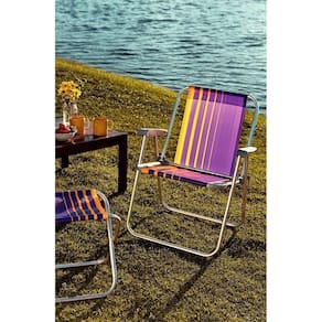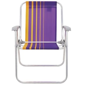 DESCRIÇÃO DAS CADEIRAS DE PRAIA TRAMONTINA SAMOA - Para curtir aqueles dias de sol deliciosos na praia, piscina ou num acampamento, a cadeira de praia Tramontina Samoa Alta em alumínio com assento roxo e amarelo é indispensável. - Desenvolvida com design inspirado na ilha de Samoa e na cor roxa e amarela, ela tem estrutura em alumínio e assento reforçado que garantem capacidade para 110 quilos. - Os detalhes são todos na cor cinza e proporcionam uniformidade visual e um acabamento excelente, além de deixá-la ainda mais moderna!