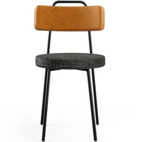 Revestimento do encosto em Couríssimo na cor Whisky e do assento em Linho na cor Chumbo, com acabamento semi brilho.