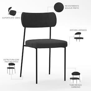 Caso você esteja buscando conforto, realce e praticidade, o Kit 04 Cadeiras Decorativas Estofada Para Sala De Jantar Melina L02 Bouclê Preto - Lyam Decor vai superar todas as suas expectativas. Garante muita comodidade e otimiza o espaço, além de harmonizar com seu estilo decorativo facilmente, podendo ser utilizada em salas de estar, jantar e cozinha, além de dar um toque especial em sua decoração. Sua proposta de design suavizará seu ambiente sem passar despercebida oferecendo mais leveza e receptividade ao seu lar. Estruturada em aço carbono, contrasta lindamente com o encosto e assento estofados que são extremamente confortáveis, resistentes e aconchegantes. Você merece esta incrível combinação em sua casa, adquira já a sua!
