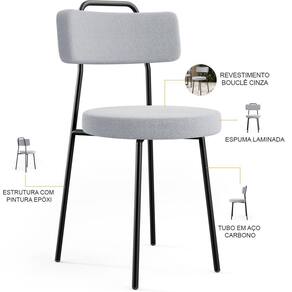 Amplamente moderna, dispondo de muito realce e design singular, o Kit 04 Cadeiras Decorativas Estofadas Para Sala De Jantar Barcelona L02 Bouclê Cinza - Lyam Decor vem com a personalidade e elegância que sua decoração merece! Estruturada em aço carbono, contrasta lindamente com o encosto e assento estofados, cabe mencionar ainda seu revestimento em Couríssimo, é confeccionada por materiais de excelente qualidade, extremamente resistentes e aconchegantes.