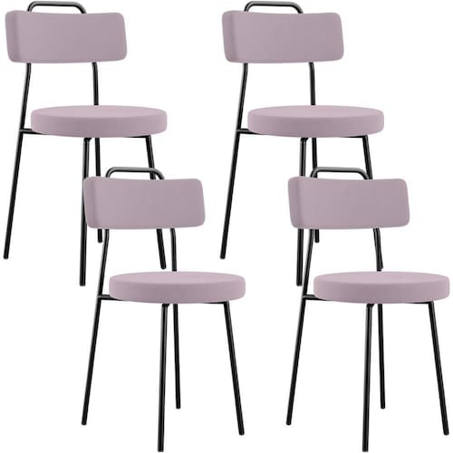 Amplamente moderna, dispondo de muito realce e design singular, o Kit 04 Cadeiras Decorativas Estofadas Para Sala De Jantar Barcelona L02 Suede Rosê - Lyam Decor vem com a personalidade e elegância que sua decoração merece! Estruturada em aço carbono, contrasta lindamente com o encosto e assento estofados, cabe mencionar ainda seu revestimento em Couríssimo, é confeccionada por materiais de excelente qualidade, extremamente resistentes e aconchegantes.