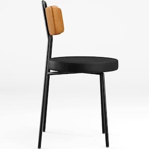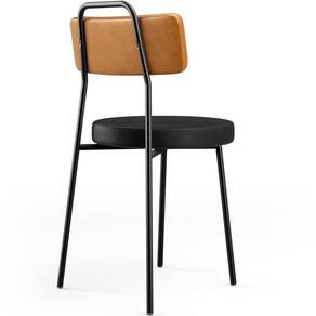 Revestimento do encosto em Couríssimo na cor Whisky e do assento em Couríssimo na cor Preto, com acabamento semi brilho.