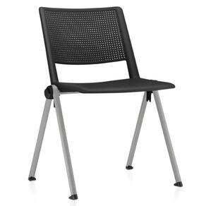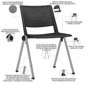 Material do encosto e assento injetado em Polipropileno (PP) na tonalidade Preto.