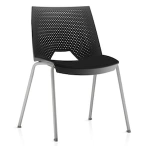 Encosto e assento monobloco, com material injetado em Polipropileno (PP), na tonalidade Preto.