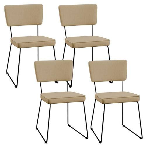 O espetáculo que é o Kit 04 Cadeiras Decorativa Estofada Para Sala Base Em Aço Allana L02 Linho Bege Escuro - Lyam Decor vem para agregar ainda mais valor na decoração da sua casa. Sua estrutura em aço remete-nos ao estilo industrial que surgiu em Nova York no século XX, já o assento e encosto estofados trazem equilíbrio e conforto criando a combinação perfeita para o ambiente.