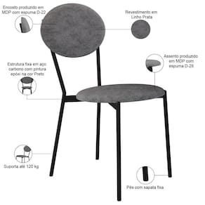 Model: Azuri | É empilhável: Não | ProductLength: 53 cm | MaterialFamily: Aço, MDP e Linho | ProductWarranty: 90 dias após o recebimento do produto | Material: Estrutura em Aço e MDP, Revestimento em Linho | ProductWidth: 43 cm | ProductHeight: 258 cm | ProductInstructions: Produto para uso em ambiente interno, nao devendo ficar exposto ao sol, calor e umidade excessivos. | ProductWeight: 21 kg | Cor da estrutura da cadeira: Preto | É dobrável: Não | Requer montagem: Não | Tempo de montagem: na | OriginCountry: Brasil | Cor: Prata | ColorFamily: Prateado | ColorSimple: Prata | SupplierSimpleName: Kit 04 Cadeiras Estofada Para Sala de Jantar Azuri Preto C01 Linho Prata - Lyam Decor | ColorSupplier: Prata | Fabricante: Lyam Decor | Desenho do tecido: Liso | Material do estofamento: MDP, Espuma D22D28 e Linho | Cor do assento: Prata | Profundidade da cadeira: 53 cm | Profundidade do assento: 42 cm | Largura do assento: NA | Firmeza: Firme | OriginState: PR | ProductContents: 04 Cadeiras | Color: Prata | SizeDescription: Altura: 258 cm x Largura: 43 cm x Profundidade: 53 cm | Cor do estofamento: Prata | É cadeira de balanço: Não | Altura da cadeira: 86 cm | Peso máximo suportado: 120 kg | Altura do assento a partir do solo: 49 cm | Largura da cadeira: 43 cm | Espessura do assento: na