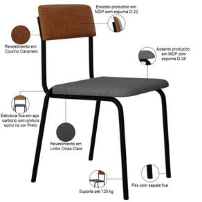 Material do estofamento: Aço, MDP, Linho e Couro sintético | Firmeza: Firme | Color: Caramelo | Altura do assento a partir do solo: 47,5 cm | É dobrável: Não | ColorSimple: Caramelo | Cor do estofamento: Cinza claroCaramelo | MaterialFamily: Aço, MDP, Linho e Couro sintético | OriginState: PR | ProductContents: 04 Cadeiras | SizeDescription: Altura: 243 cm x Largura: 48 cm x Profundidade: 51 cm | Largura do assento: NA | ProductWarranty: 90 dias após o recebimento do produto | ProductHeight: 243 cm | ProductWeight: 21,6 Kg | Profundidade da cadeira: 51 cm | Profundidade do assento: 40 cm | É empilhável: Não | Tempo de montagem: na | Model: Sense | Cor: Caramelo | ProductWidth: 48 cm | ProductLength: 51 cm | ProductInstructions: Produto para uso em ambiente interno, nao devendo ficar exposto ao sol, calor e umidade excessivos. | Desenho do tecido: Liso | Cor da estrutura da cadeira: Preto | Cor do assento: Cinza claro | É cadeira de balanço: Não | Altura da cadeira: 81 cm | Largura da cadeira: 47,5 cm | Espessura do assento: na | ColorFamily: Caramelo | Peso máximo suportado: 120 kg | ColorSupplier: Caramelo | Requer montagem: Não | Fabricante: Lyam Decor | Material: Estrutura em Aço e MDP, Revestimento em Linho e Couro sintético | OriginCountry: Brasil | SupplierSimpleName: Kit 04 Cadeiras Estofada Para Sala de Jantar Sense Preto C01 Linho Cinza Claro Courino Caramelo - Ly