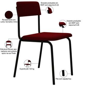 OriginCountry: Brasil | ProductWidth: 48 cm | Cor: Vermelho vinho | Color: Vermelho | ColorFamily: Vermelho | ColorSimple: Vermelho | ColorSupplier: Vermelho Vinho | Fabricante: Lyam Decor | Material: Estrutura em Aço e MDP, Revestimento em Veludo | Cor do estofamento: Vermelho vinho | Model: Sense | ProductWarranty: 90 dias após o recebimento do produto | OriginState: PR | ProductContents: 04 Cadeiras | ProductHeight: 243 cm | ProductWeight: 21,6 Kg | Desenho do tecido: Liso | Cor da estrutura da cadeira: Preto | Cor do assento: Vermelho vinho | É cadeira de balanço: Não | Altura da cadeira: 81 cm | Profundidade da cadeira: 51 cm | Profundidade do assento: 40 cm | Largura do assento: NA | Firmeza: Firme | Largura da cadeira: 47,5 cm | Espessura do assento: na | Altura do assento a partir do solo: 47,5 cm | Peso máximo suportado: 120 kg | É dobrável: Não | É empilhável: Não | Tempo de montagem: na | ProductLength: 51 cm | SizeDescription: Altura: 243 cm x Largura: 48 cm x Profundidade: 51 cm | MaterialFamily: Aço, MDP e Veludo | ProductInstructions: Produto para uso em ambiente interno, nao devendo ficar exposto ao sol, calor e umidade excessivos. | SupplierSimpleName: Kit 04 Cadeiras Estofada Para Sala de Jantar Sense Preto C01 Veludo Vermelho Vinho - Lyam Decor | Material do estofamento: Aço, MDP e Veludo | Requer montagem: Não