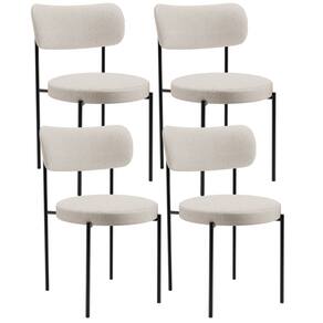 Kit 04 Cadeiras Estofadas Para Sala De Jantar Louise L02 Linho Cru - Lyam Decor - Bege