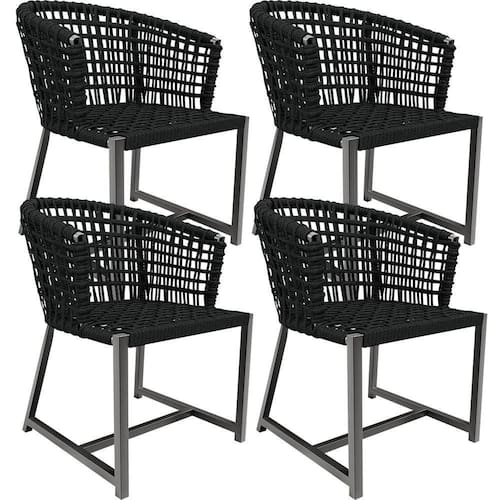 Kit 04 Cadeiras Decorativas Para área Gourmet Cozinha Corda Náutica Belize D04 Preto - Lyam Decor