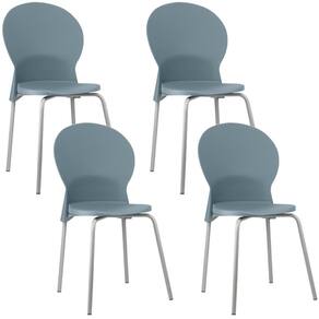 Kit 04 Cadeiras Para Sala De Jantar Cozinha Mond F02 Base Aço Branco Azul - Lyam Decor