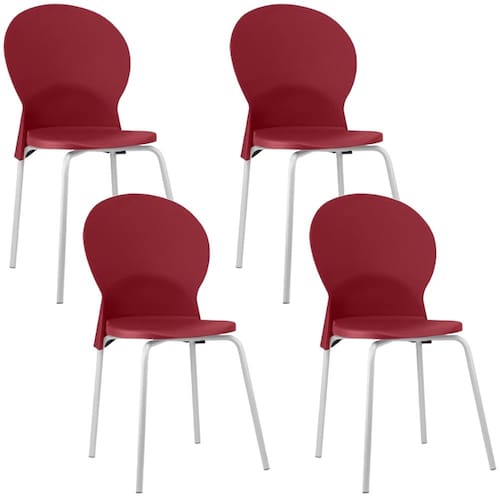 Material do encosto e assento injetado em Polipropileno (PP) 100% reciclável, na tonalidade Vermelho.