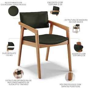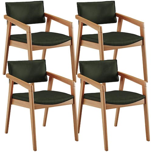 O Kit 04 Cadeiras Para Sala de Jantar Estar Living Giorgia B04 Couríssimo Verde Musgo, da Lyam Decor, é perfeito para adicionar um toque moderno à sala de jantar. Com sua estrutura em madeira maciça envernizada, ela traz durabilidade e estilo para o ambiente. O assento e o encosto estofados e revestidos com tecidos alto padrão proporcionam conforto durante as refeições, além de serem fáceis de limpar.