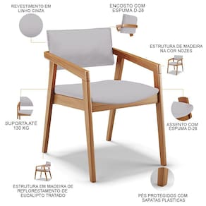 O Kit 04 Cadeiras Para Sala de Jantar Estar Living Giorgia B04 Linho Cinza, da Lyam Decor, é perfeito para adicionar um toque moderno à sala de jantar. Com sua estrutura em madeira maciça envernizada, ela traz durabilidade e estilo para o ambiente. O assento e o encosto estofados e revestidos com tecidos alto padrão proporcionam conforto durante as refeições, além de serem fáceis de limpar.