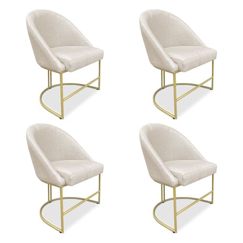 A base metálica em dourado confere à cadeira um aspecto industrial moderno, proporcionando um contraste encantador com o tecido em linho. Essa mistura de materiais agrega um ar contemporâneo e luxuoso ao ambiente, além de assegurar estabilidade e durabilidade à peça. O acabamento cuidadoso realça ainda mais a beleza e a qualidade do produto.