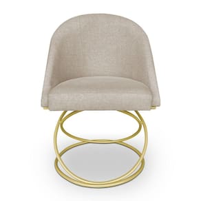 A base metálica em dourado confere à cadeira um aspecto industrial moderno, proporcionando um contraste encantador com o tecido em linho. Essa mistura de materiais agrega um ar contemporâneo e luxuoso ao ambiente, além de assegurar estabilidade e durabilidade à peça. O acabamento cuidadoso realça ainda mais a beleza e a qualidade do produto.