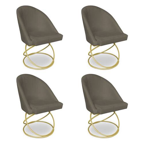 Kit 04 Cadeiras Poltrona de Jantar Bela Suede Marrom Rato Base Metálica Luxo Dourado - Pallazio