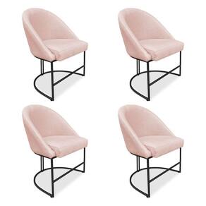 Kit 04 Cadeiras Poltrona De Jantar Bela Suede Rosa Bebê Base Metálica Industrial Preto - Pallazio