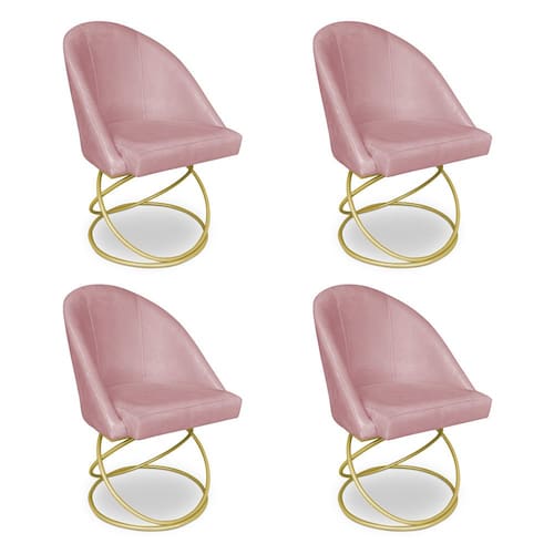 Kit 04 Cadeiras Poltrona de Jantar Bela Veludo Base Metálica Luxo Dourado - Pallazio - Rosê