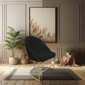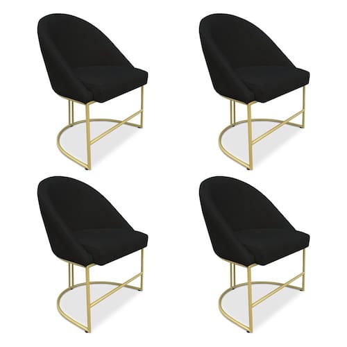 Kit 04 Cadeiras Poltrona de Jantar Bela Veludo Preto Base Metálica Industrial Dourado - Pallazio